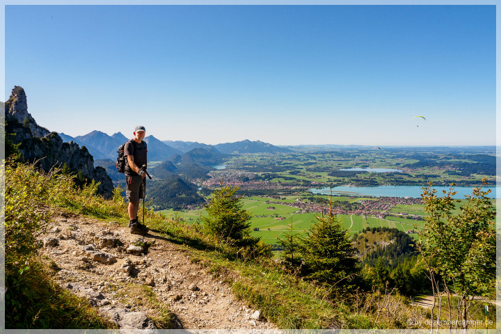 Wir waren viel mit dem Rad unterwegs, unter anderem zum idyllischen Alatsee, und schnürten an einem Tag ein letztes Mal die Wanderstiefel: Zu Fuß ging es hinauf auf den Tegelberg – ein steiler Aufstieg, aber immer wieder belohnt mit herrlichen Ausblicken auf die zahlreichen Seen der Umgebung. Die meisten Besucher fahren mit der Seilbahn hinauf, wir können die Wanderalternative aber absolut empfehlen – übrigens auch für den Abstieg. (11 km, 920 HM)