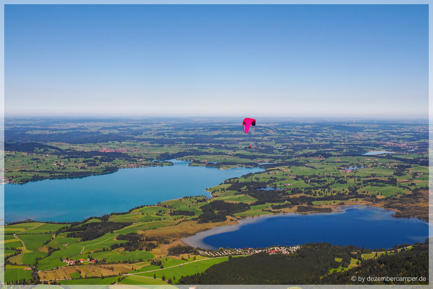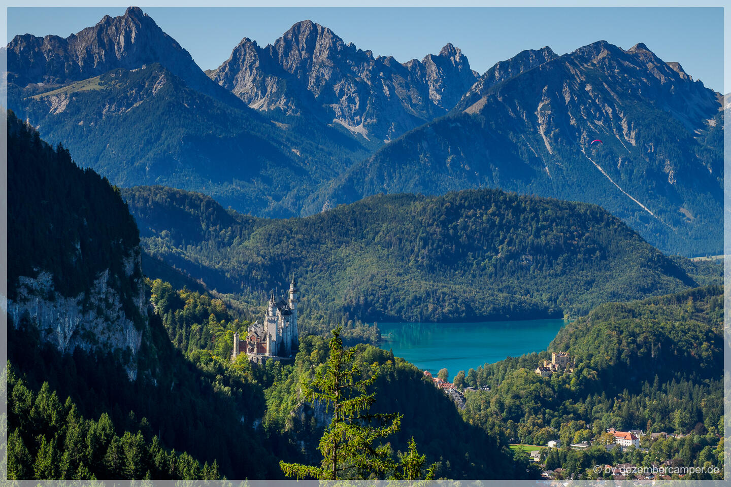 Letzte Station war die Gegend um Füssen. Auch hier waren die Campingplätze stark ausgelastet: Hopfensee und Forggensee waren ausgebucht, am Bannwaldsee hatten wir schließlich Glück und ergatterten einen der letzten freien Plätze. Die Lage ist ideal – direkt am See und nur wenige Radkilometer von den Königsschlössern Neuschwanstein und Hohenschwangau sowie der Stadt Füssen entfernt.