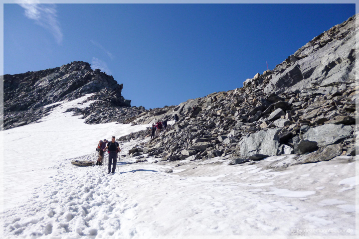 Bei der Alpinschule werden diverse Varianten der Tour angeboten (Familientour, „Luxustour“ mit Hotelübernachtungen, die klassische Hüttentour oder die Hüttentour mit Gipfelbesteigung). Wir entschieden uns für die Hüttentour mit Gipfelbesteigung und fanden Ende August/Anfang September zum Glück noch verfügbare Plätze.