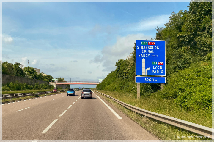 Auch heute hieß es wieder früh aufstehen – der eigentliche Start unserer Urlaubstour stand an! Wir wollten möglichst viel Strecke machen, das Tagesziel ließen wir bewusst offen: einfach losfahren und schauen, wie gut wir vorankommen.In Luxemburg wurde noch schnell günstig getankt und AdBlue aufgefüllt, dann ging es los Richtung Süden. Es war Sonntag, die Straßen waren angenehm leer und wir kamen zügig voran. Doch ab etwa Dijon wurde der Verkehr spürbar dichter, dazu kamen immer wieder kräftige Regenschauer. Ab Lyon standen wir dann auch in den ersten Staus – auf der Gegenspur sah es allerdings noch schlimmer aus.