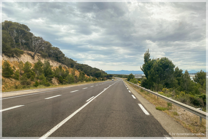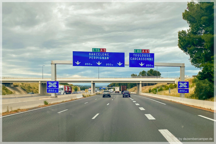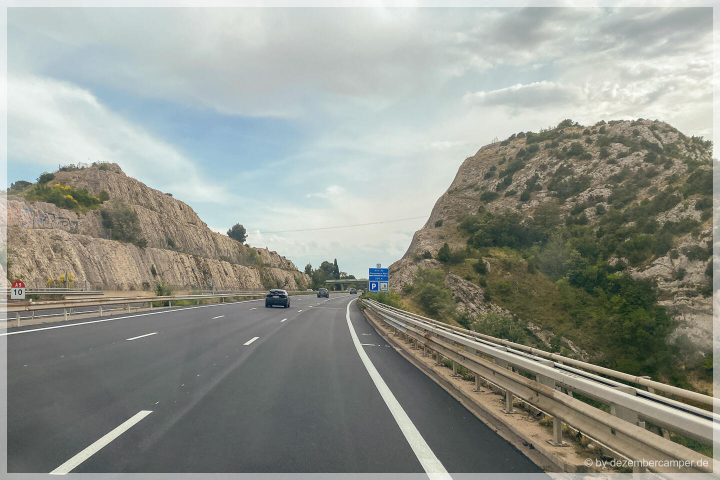 Die Tagesetappe war mit rund 280 km angenehm überschaubar. Zunächst ging es über die (mautpflichtige) Autobahn A9, bei Leucate wechselten wir auf kleinere Küstenstraßen – eine landschaftlich sehr schöne Strecke: links das Mittelmeer, rechts immer wieder Lagunen, dazwischen einige hübsche Küstenorte.