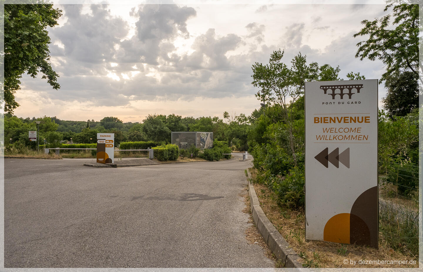 Während der Fahrt checkten wir verschiedene Stell- und Campingplätze. In den Städten Orange und Avignon schien alles voll zu sein, und auf „irgendwo im Nirgendwo“ hatten wir keine Lust. Also entschieden wir uns spontan für den Campingplatz an der Pont du Gard – laut Homepage noch nicht ausgebucht, und die beeindruckende Brücke stand ohnehin schon lange auf unserer Wunschliste.