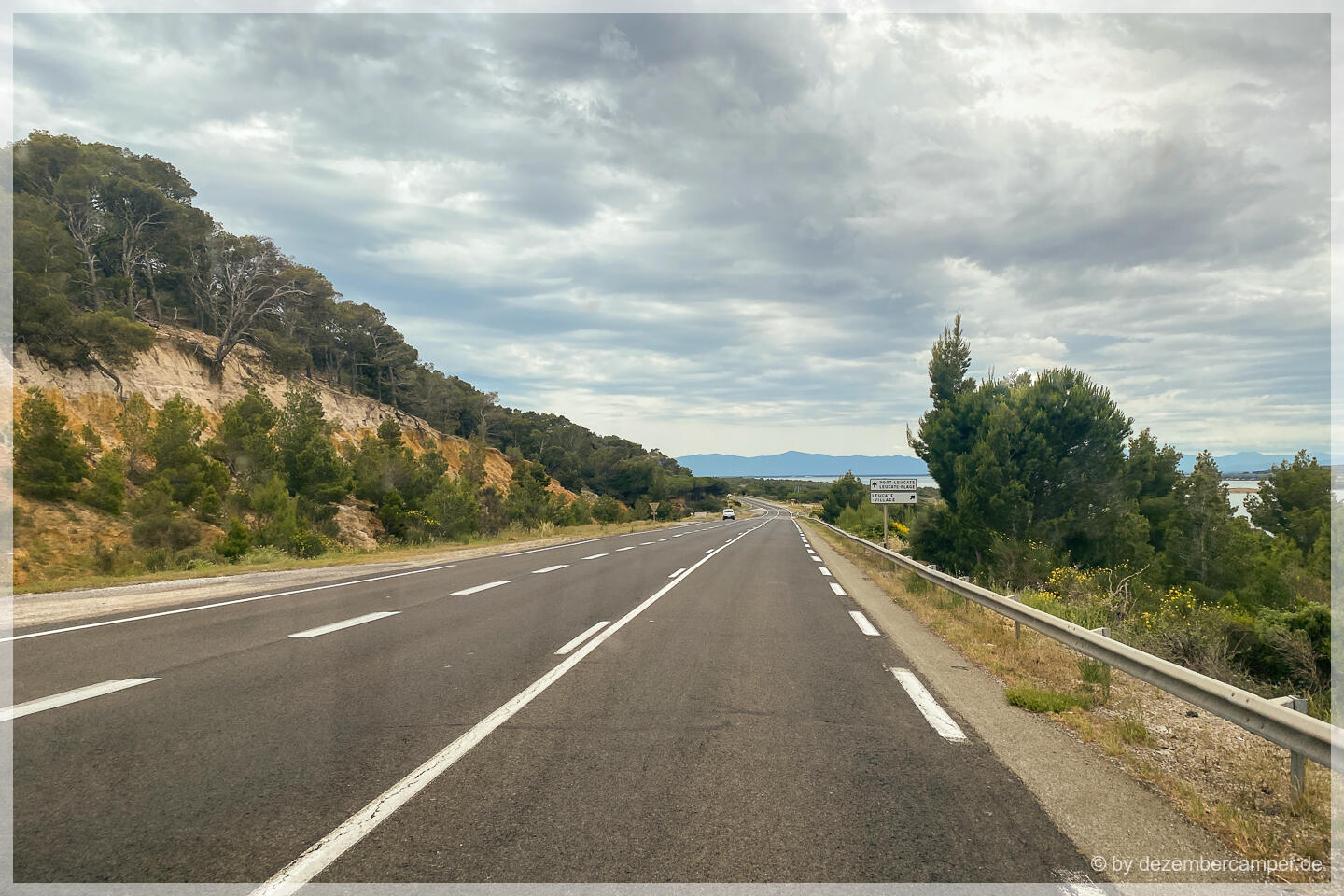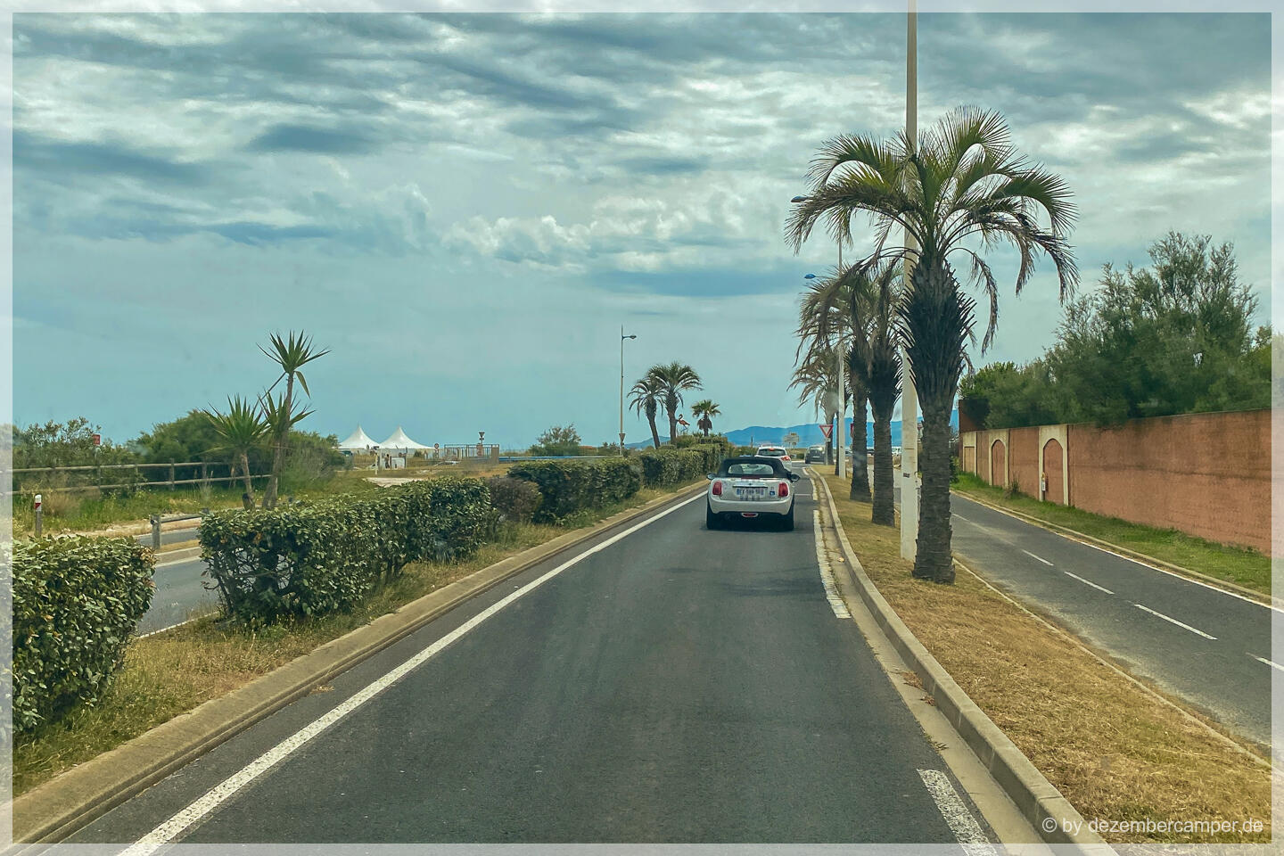 Die Tagesetappe war mit rund 280 km angenehm überschaubar. Zunächst ging es über die (mautpflichtige) Autobahn A9, bei Leucate wechselten wir auf kleinere Küstenstraßen – eine landschaftlich sehr schöne Strecke: links das Mittelmeer, rechts immer wieder Lagunen, dazwischen einige hübsche Küstenorte.
