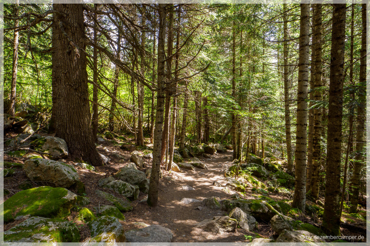 Kurz vor zehn Uhr erreichten wir den Sant-Maurici-See – denselben Ausgangspunkt wie am Vortag. Es war noch angenehm ruhig im Park, nur vereinzelt begegneten uns andere Wanderer. Kein Vergleich zu gestern – Montagmorgen und deutlich früher am Tag.