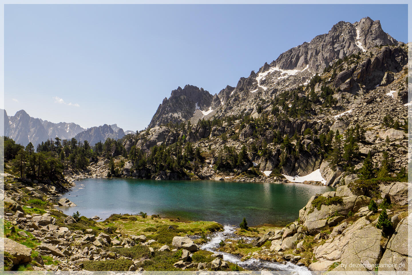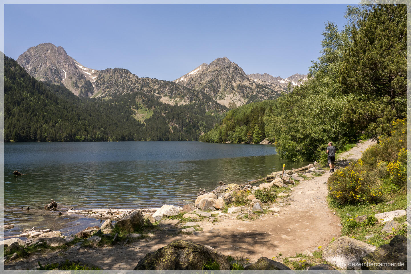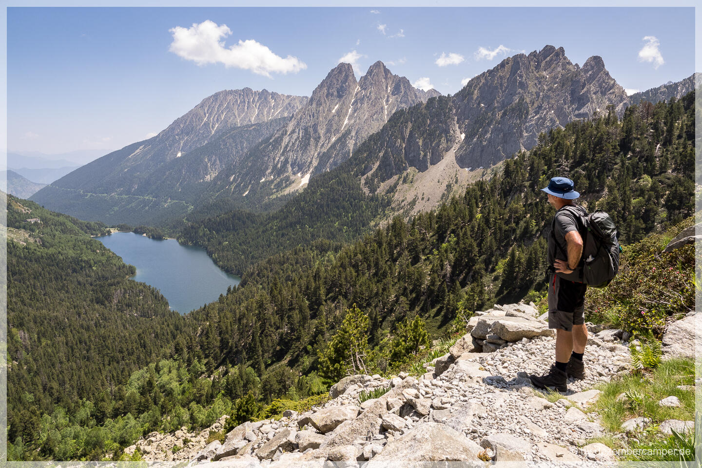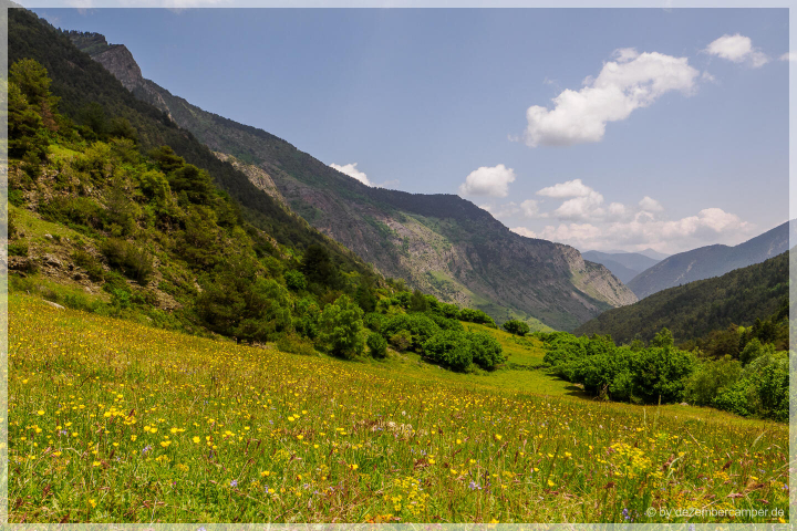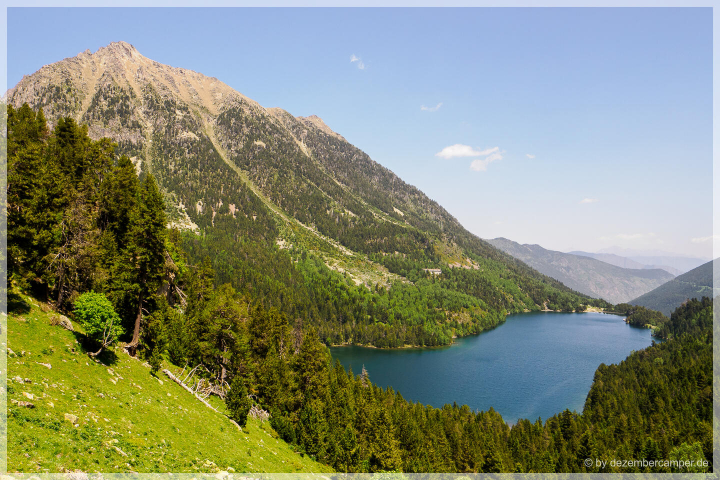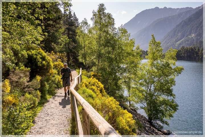 Für den Rückweg wählten wir eine alternative Route, die in einem großen Bogen durch den Park führte. Die Landschaft begeisterte uns weiterhin mit jedem Kilometer – alpine Wiesen, glasklare Bäche und immer wieder spektakuläre Ausblicke auf den Sant Maurici See, den wir schließlich von oben wiedersahen. Nach über fünf Stunden reiner Wanderzeit erreichten wir wieder das Seeufer.
