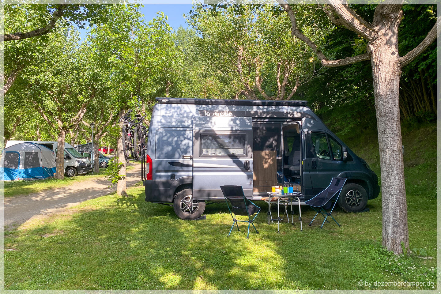 Nachdem wir gestern erst recht spät auf dem Voraparc-Campingplatz angekommen waren und die letzten zwei Tage größere Wandertouren unternommen hatten, waren wir uns einig: Heute sollte es etwas ruhiger zugehen. Also erst einmal ausschlafen, den Morgenkaffee in der Sonne genießen und gemütlich frühstücken (Baguette und Croissants hatten wir noch am Vorabend auf dem Platz bestellt).