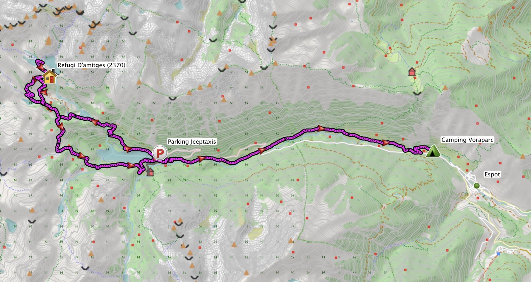 Die Jeep-Taxis starten normalerweise in Espot, sobald sechs Personen beisammen sind. Gäste vom Voraparc Campingplatz haben allerdings den Vorteil, dass man das Taxi direkt an der Rezeption ordern kann – praktisch, denn so wird man direkt am Platz eingesammelt. Die einfache Fahrt kostet 5,75 € pro Person.