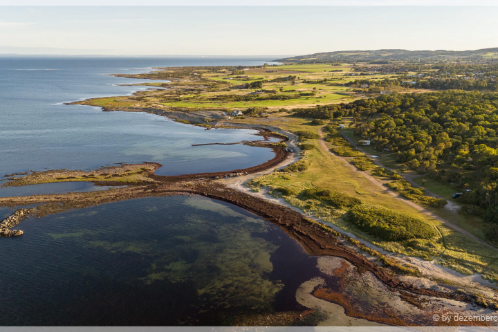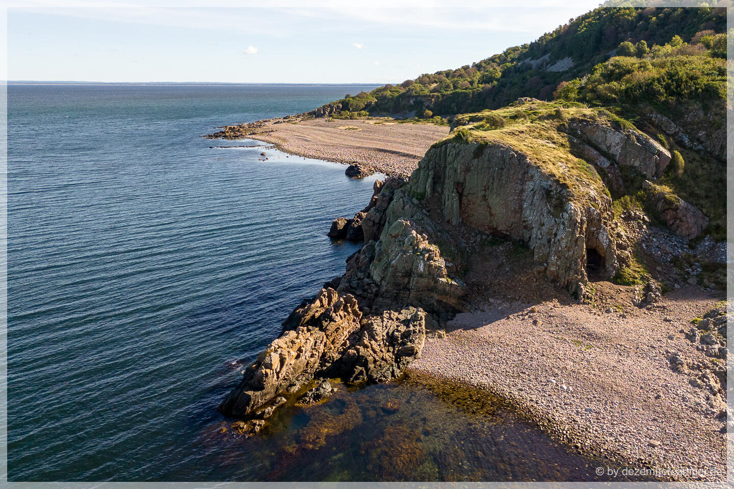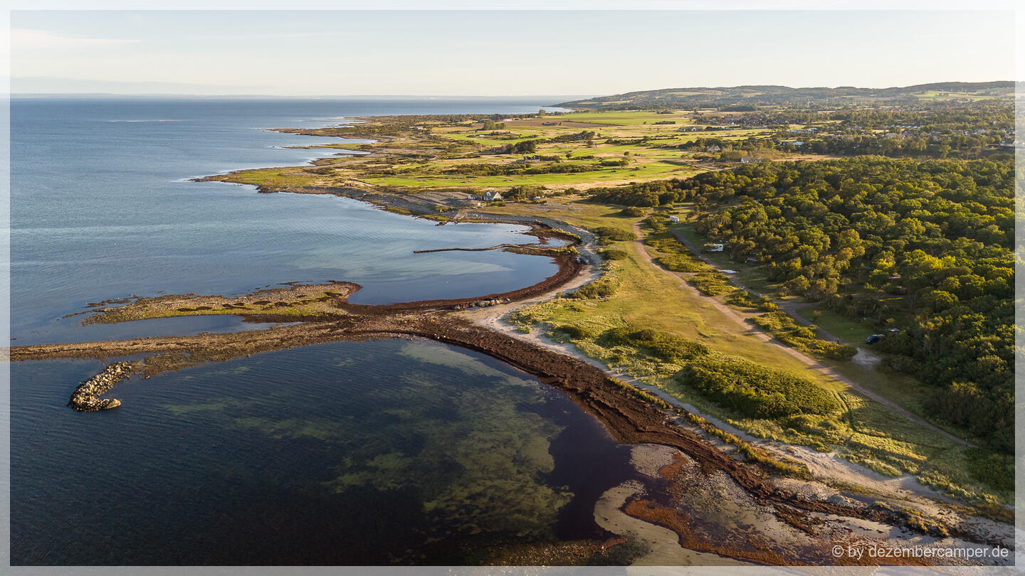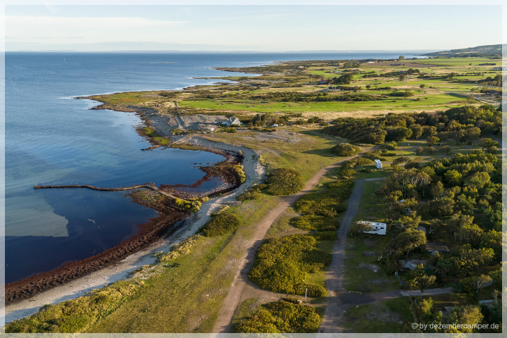 Nachdem wir gestern bis auf die Bjärehalbinsel gefahren und nur ein bisschen spazieren gegangen waren, wollten wir die Gegend heute etwas intensiver erkunden. Nur etwa sieben Kilometer vom Campingplatz in Torekov entfernt liegt das Natur-Reservat „Hovs Hallar“. Vor der Abfahrt durfte die Drohne im schönen Morgenlicht nochmal hoch.