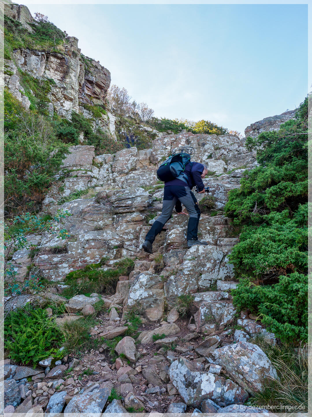 Der Wanderweg, den wir uns ausgesucht hatten, führte allerdings erstmal oben auf dem Bergrücken entlang und erst am Ende der Rundtour sollten die Klippen liegen – also eine etwas größere Runde.