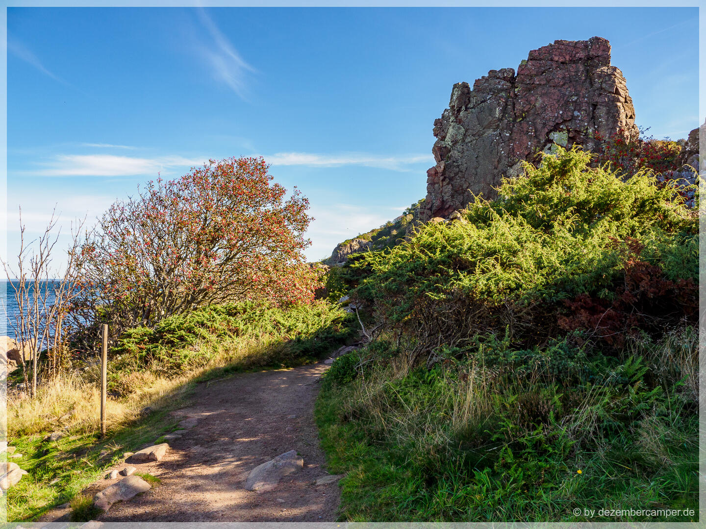 Dann packten wir zusammen und fuhren hinüber auf den Parkplatz des Naturreservats. Der ist übrigens richtig groß, das erwartet man in dieser Idylle erstmal gar nicht. „Hovs Hallar“ sind faszinierende Klippen auf einer Breite von ca. 1,5km.